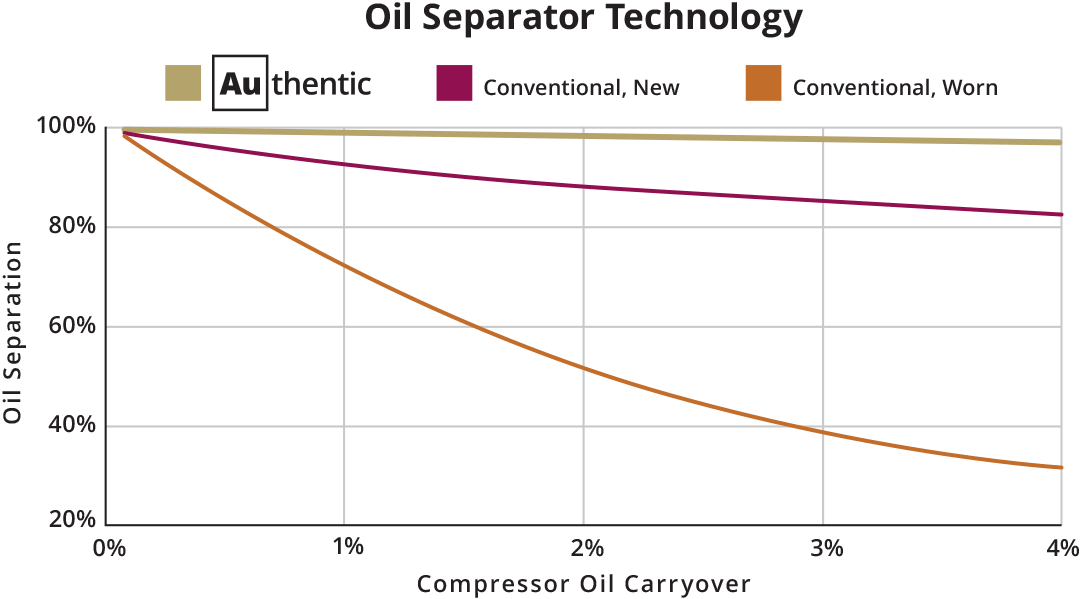 Unlike traditional separator elements that rely on fiber materials, the AUthentic cartridge uses a multi-layer welded polymer structure. This eliminates the risk of fiber contamination within the refrigeration system.